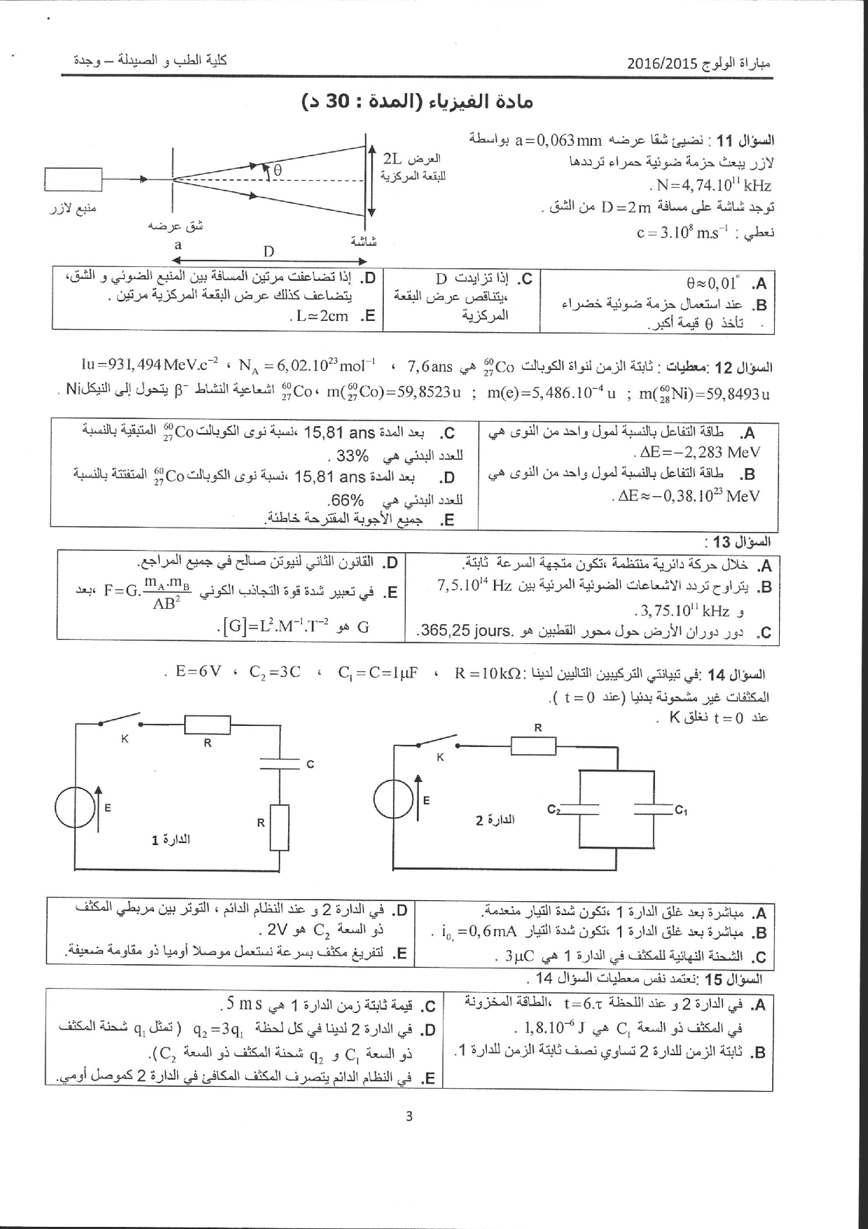 فيزياء كلية الطب بالرباط 2016 القماح مواضيع الفيزياء 3 06-04-2017 02:36 AM